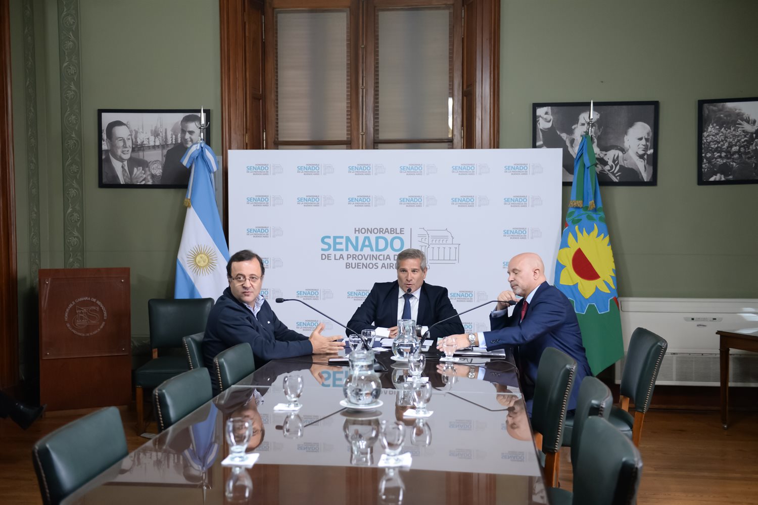 El Salón Antonio Cafiero de la Cámara Alta bonaerense se constituyó en el escenario donde se llevó adelante el encuentro del pleno de la Comisión de Industria y Minería del Senado Bonaerense que encabezó el titular del espacio, senador Sergio Vargas (La Libertad Avanza).