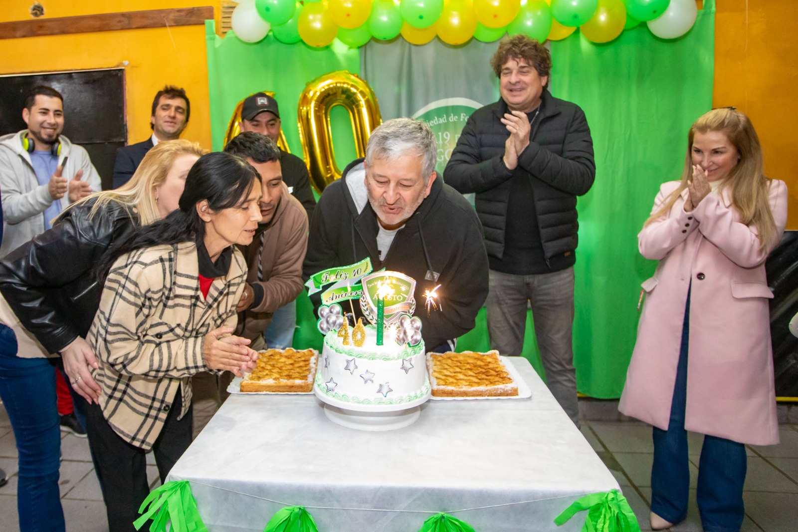 “Estamos acá, en nombre del intendente Juan José Mussi, acompañándolos. Les deseamos un feliz cumpleaños y les agradecemos por la invitación. Les trajimos un subsidio en este día especial”, expresó Benedetti.