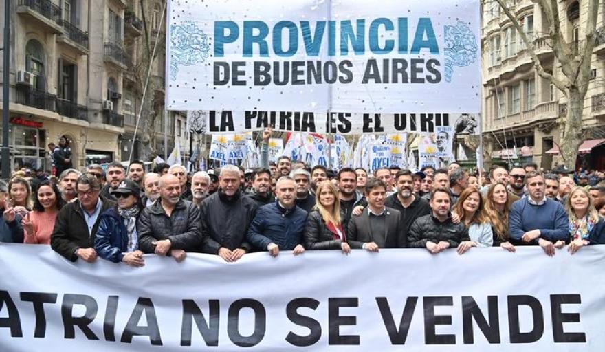 Bajo el lema «La patria no se vende», miles de ciudadanos se unieron a las autoridades provinciales en una masiva manifestación pacífica en la Provincia de Buenos Aires. El objetivo principal de la movilización fue expresar el rechazo a la reciente decisión del gobierno nacional, que bloqueó una ley de aumento en las jubilaciones a través de un veto del presidente Javier Milei.