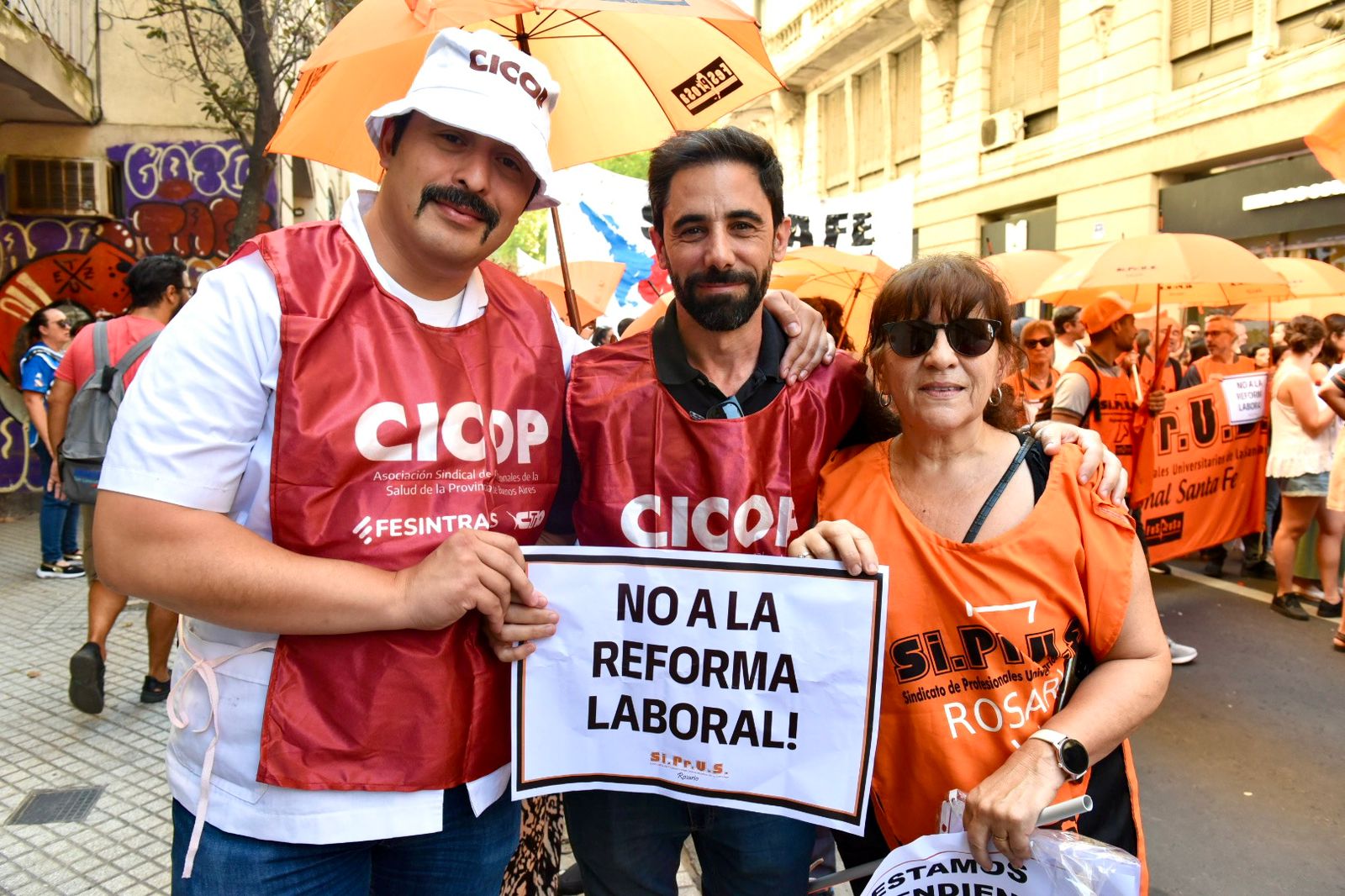 La movilización en Rosario forma parte del plan de lucha federal que comenzó la semana pasada en Córdoba y tendrá continuidad este miércoles con paro y acciones en todo el país. Durante la jornada se denunció la falta de diálogo del oficialismo con las representaciones sindicales y la complicidad de varios gobernadores con el avance de una reforma que, aseguran, atenta contra los derechos laborales.