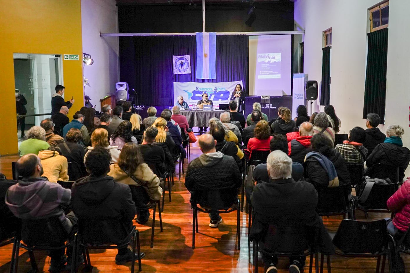 La actividad participaron excombatientes miembros del CECIM La Plata, Cristina Jonic y Pablo Masciangelo de la CTA Provincia de Buenos Aires, Patricio Villegas y Horacio Gilberto del Suteba, Walter Pardo de la AJB, Roberto Daoud, vicepresidente de OCEBA, Agustín Rosson, Cintia Leguizamon, Martin Fioreti, entre otros.