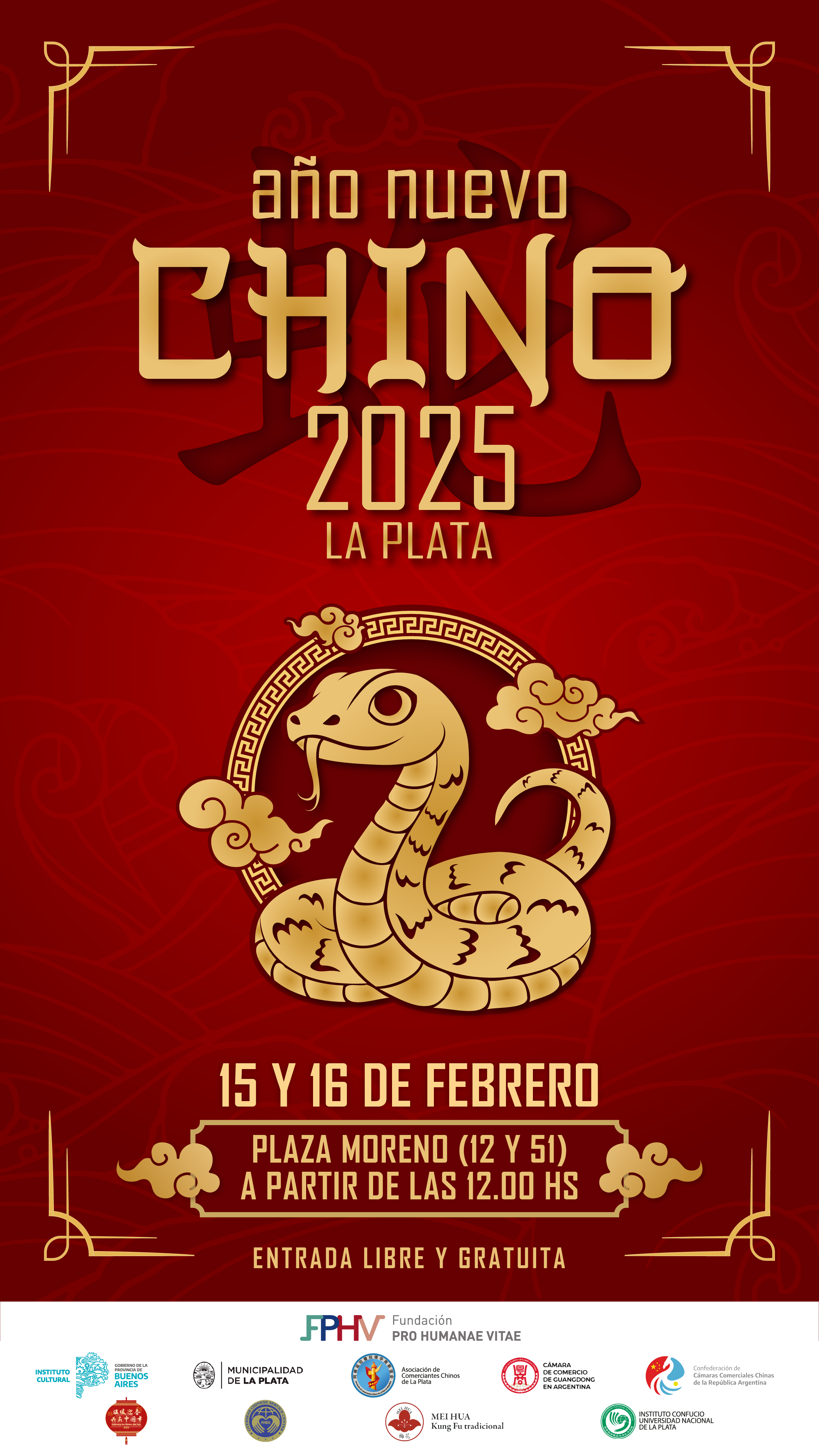 El sábado 15 y domingo 16 de febrero, la ciudad de La Plata será sede del festejo del Año Nuevo Chino, año de la Serpiente de Madera, contando con dos días de celebración en Plaza Moreno (12,51 Y 53) con ENTRADA LIBRE Y GRATUITA a partir de las 12 horas.